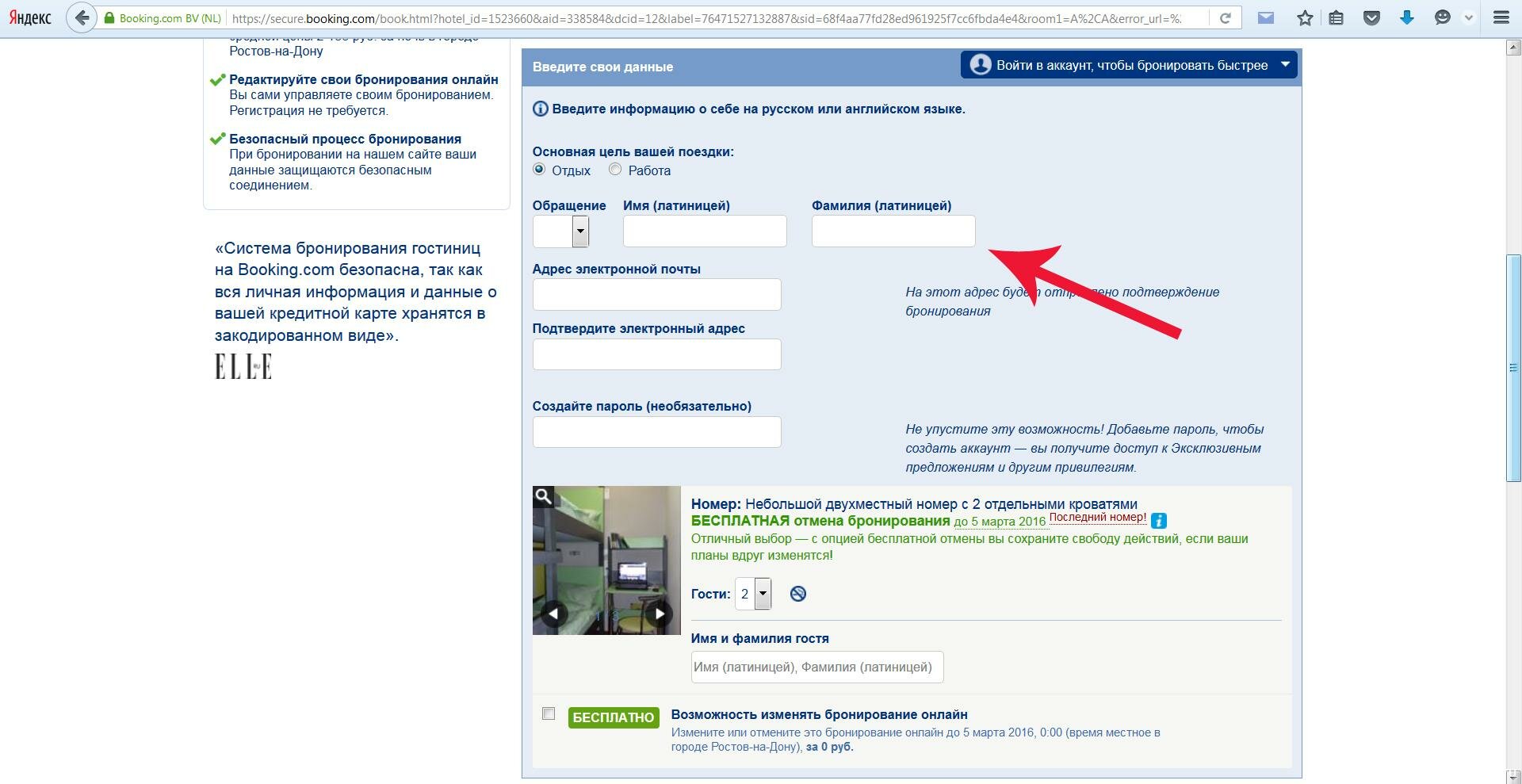 Важно! Вводить данные нужно либо на английском языке, либо на языке отеля. Так в России можно все заполнять кириллицей или латиницей. Для оформления шенгенской визы бронь принимается только на английском языке, а, к примеру, в китайском отеле примут бронь только на китайском языке.