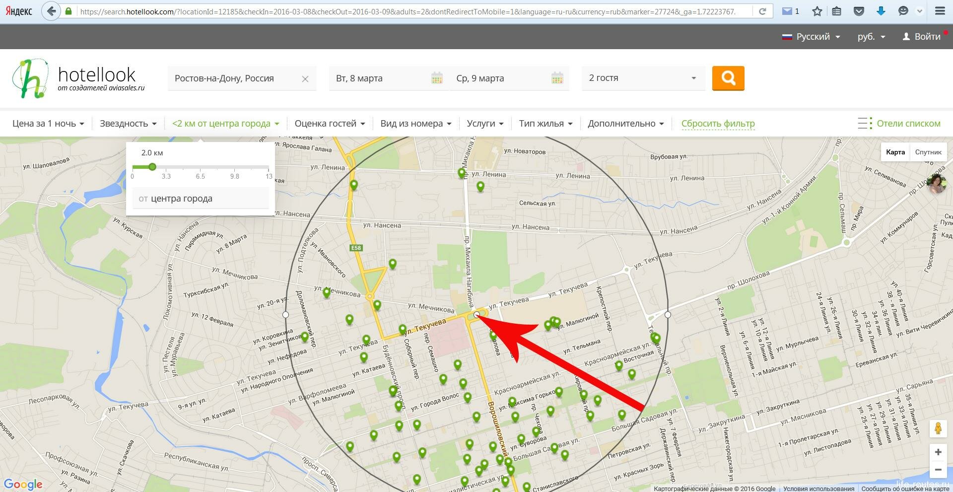 Также можно искать отели по карте. Вот, правда, центр города здесь весьма условен.